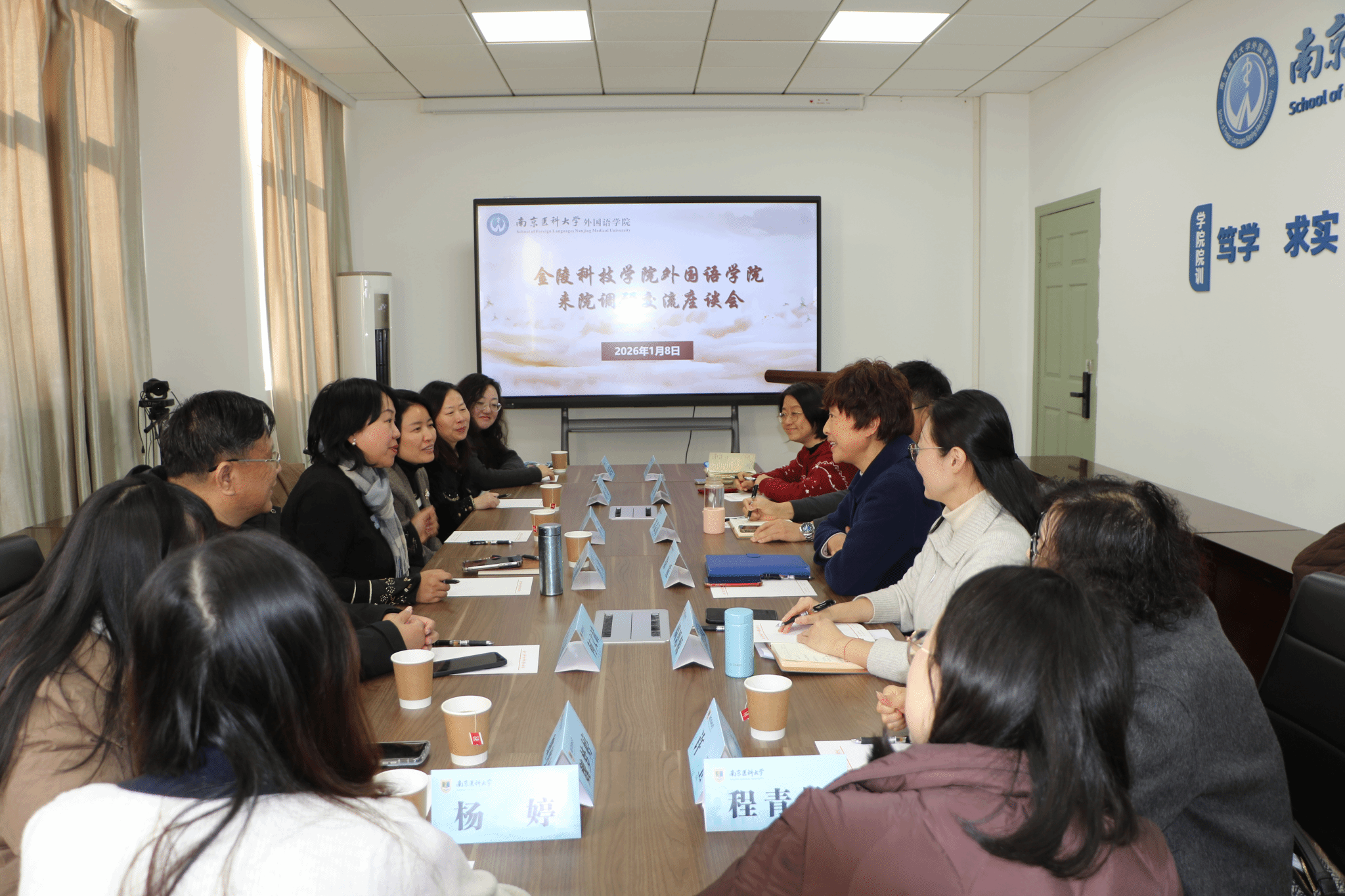 为推动学科建设高质量发展,促进校际间经验互鉴与合作,1月8日下午,外国语学院党总支书记李星、副院长李凤、副院长何文斌、英语系主任黄浩、大学英语教研一室主任魏梦婷、二室主任沈菲菲、团总支书记杨婷一行赴南京医科大学外国语学院开展专题交流。南京医科大学外国语学院党总支书记徐霞、副书记苏益民、副院长周思源及相关科室负责人出席座谈交流。