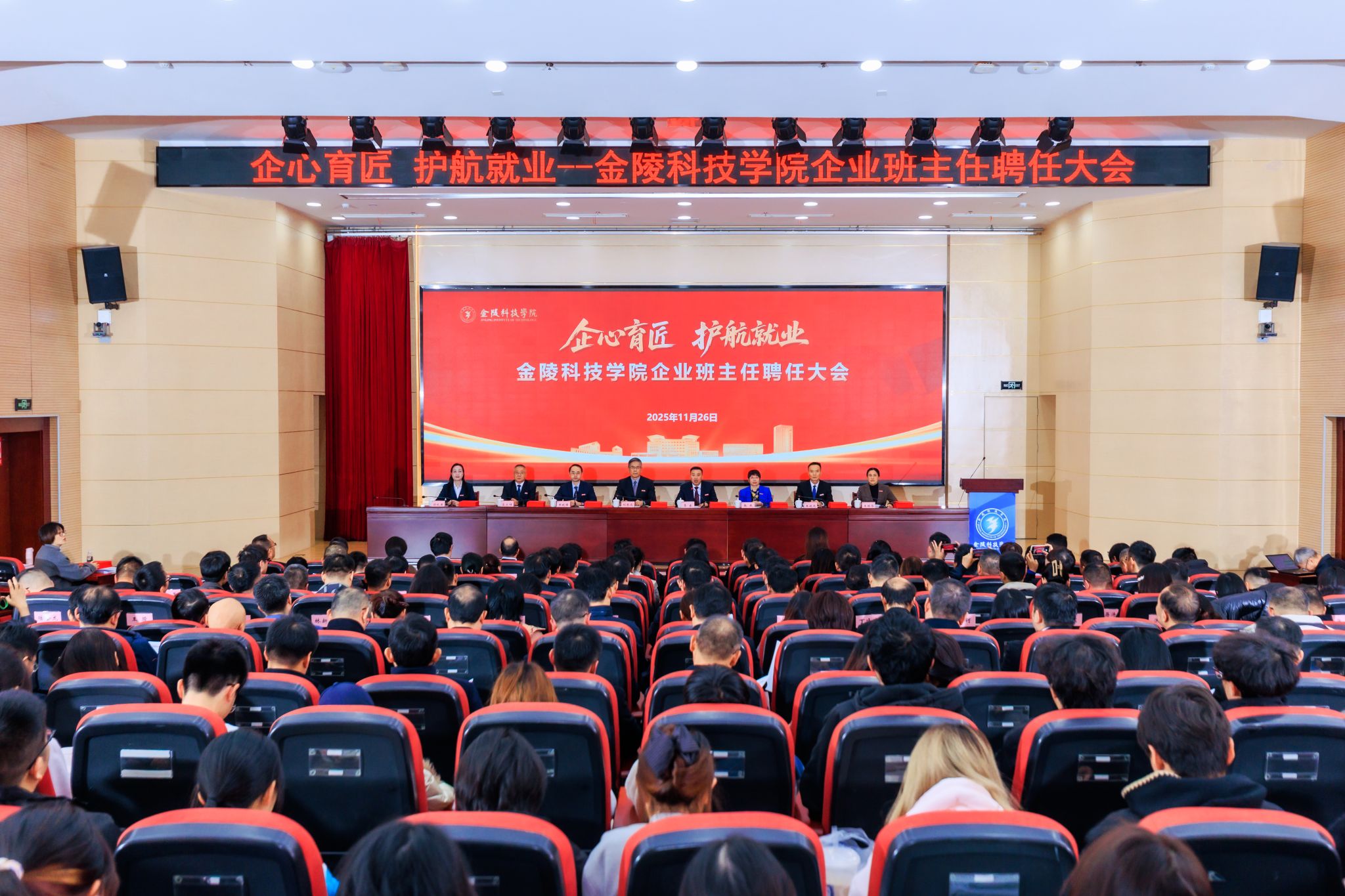 11月26日,我校在江宁校区科技楼报告厅举行“企心育匠 护航就业——金陵科技学院企业班主任聘任大会”。校党委书记刘志远出席大会并讲话,校领导、受邀企业班主任代表、相关职能部门负责人、各二级学院党政中层干部及师生代表参加大会。大会由校长季赛主持。