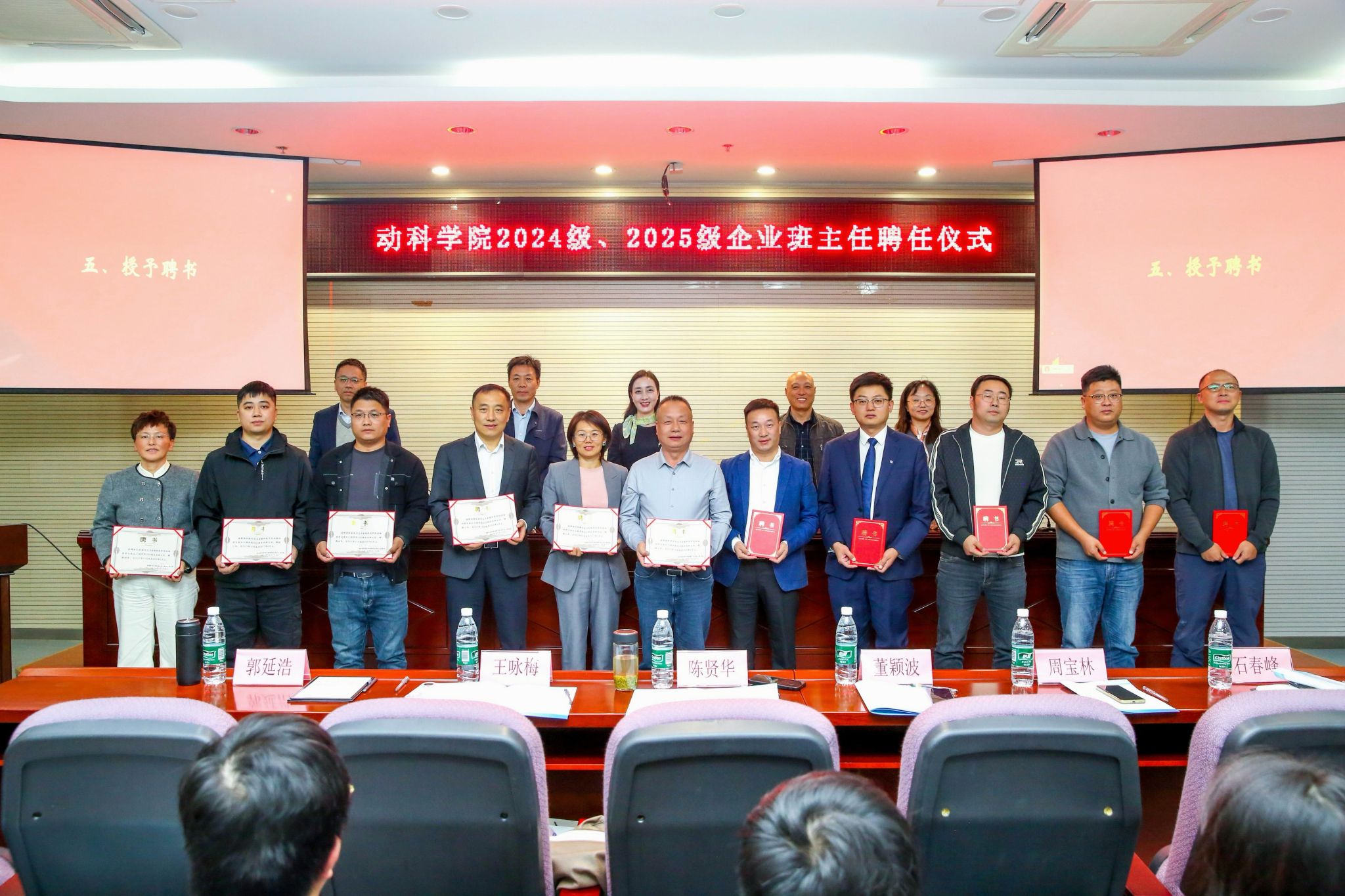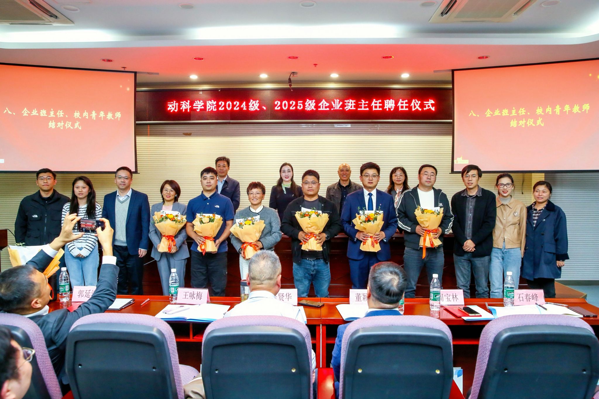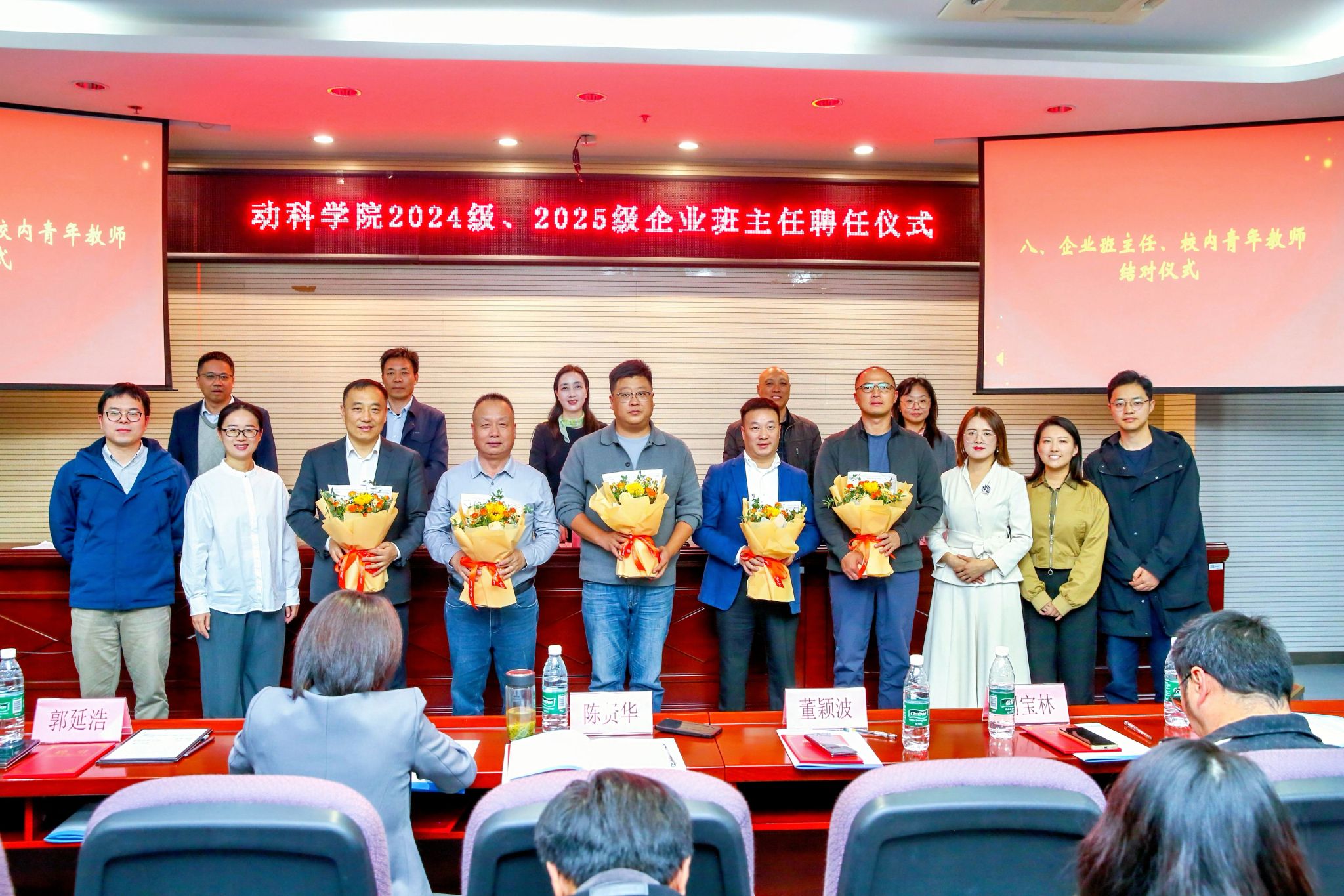 10月29日下午,动物科学与食品工程学院 2024 级、2025 级企业班主任聘任仪式在幕府校区图书馆报告厅隆重举行。大连三仪集团、江苏立华股份有限公司、南京禄口禽业股份有限公司等 12 家行业内颇具影响力的企业高管受邀出席,我校副校长顾晓燕和动物科学与食品工程学院师生代表参加聘任仪式。