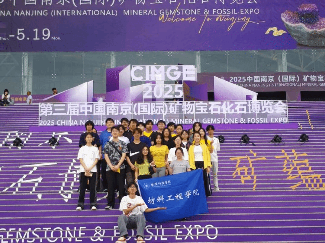当六朝古都迎来初夏,一场汇聚全球矿物精华的 "紫色盛宴" 在南京国际展览中心启幕。2025 中国南京(国际)矿物宝石化石博览会(以下简称“南京矿博会”)以 "矿蕴金陵 紫气东来" 为理念,于5月15日至19日期间,向世界展示地球亿万年孕育的矿物瑰宝。在这场跨越国界的文化交流盛事中,我校材料工程学院84名志愿者以专业素养与青春热忱,为展会构筑起坚实的服务保障,成为现场闪耀着知识光芒的风景线。